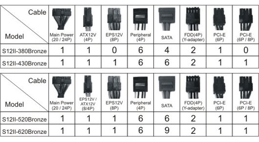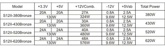 The S12II Bronze Series, similar to its predecessors, is available in the standard ATX Form Factor and in wattages that are most common for a PC system. In addition to the all-in-one cabling design, the 520W and 620W models come with additional EPS connectors for IPC and server systems and supports both 6P & 8P PCI-E connectors for the most current and high end dual graphic cards.