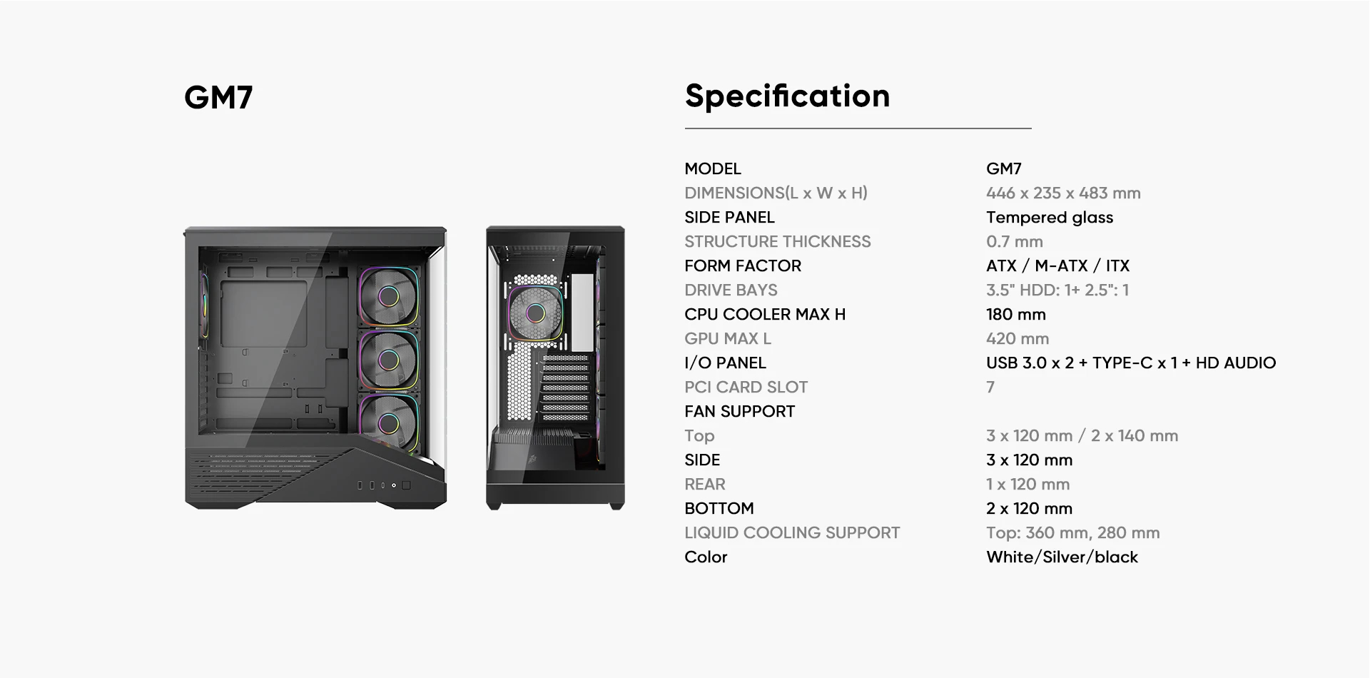 1stPlayer кутия Case ATX - GM7 Black - 4 x 120 mm A-RGB fans included, USB-C