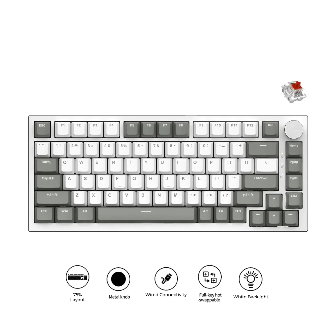Ajazz геймърска механична клавиатура Gaming Mechanical Keyboard AK820 - AS Red Switch [Linear] (English US), Gray White, White Light