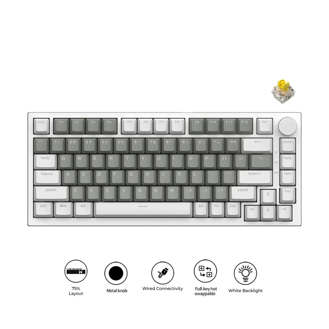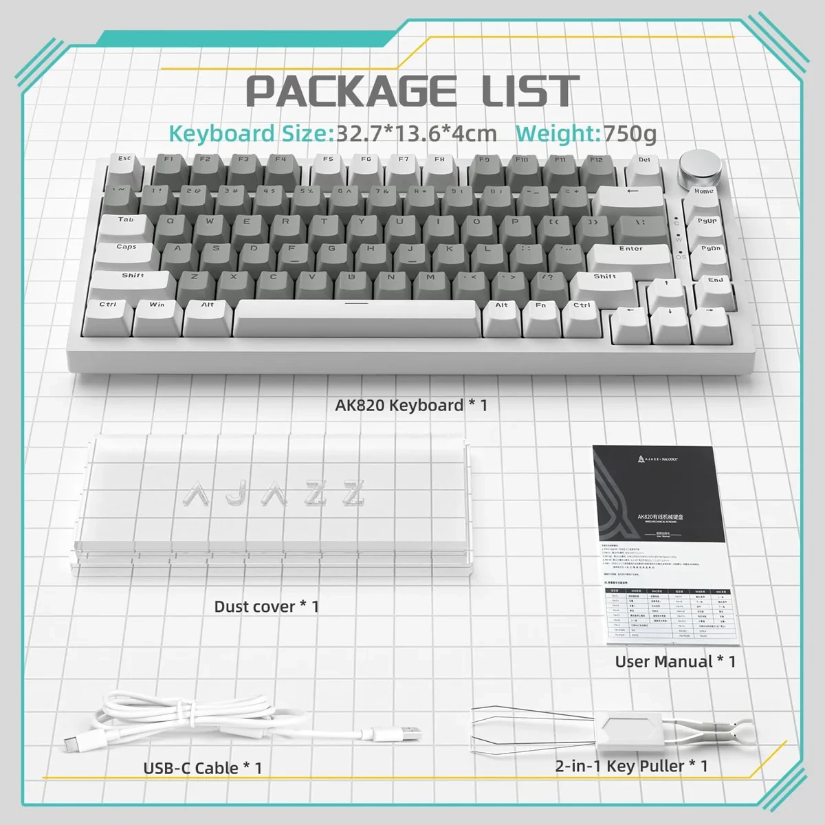 Ajazz геймърска механична клавиатура Gaming Mechanical Keyboard AK820 - Mille feuille Yellow Switches [Linear] (English US), White Gray, White Light