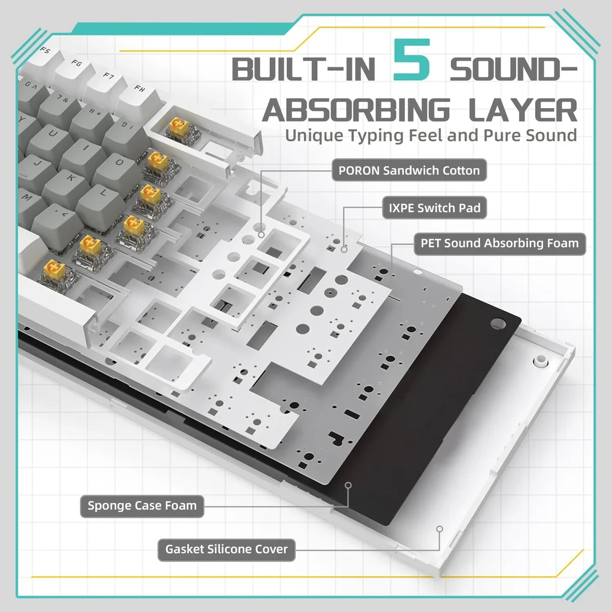 | ДОПЪЛНИТЕЛНИ | PBT Keycaps Gasket-mounted & Sound Dampening Foams: A New Standard for Comfort and Precision |