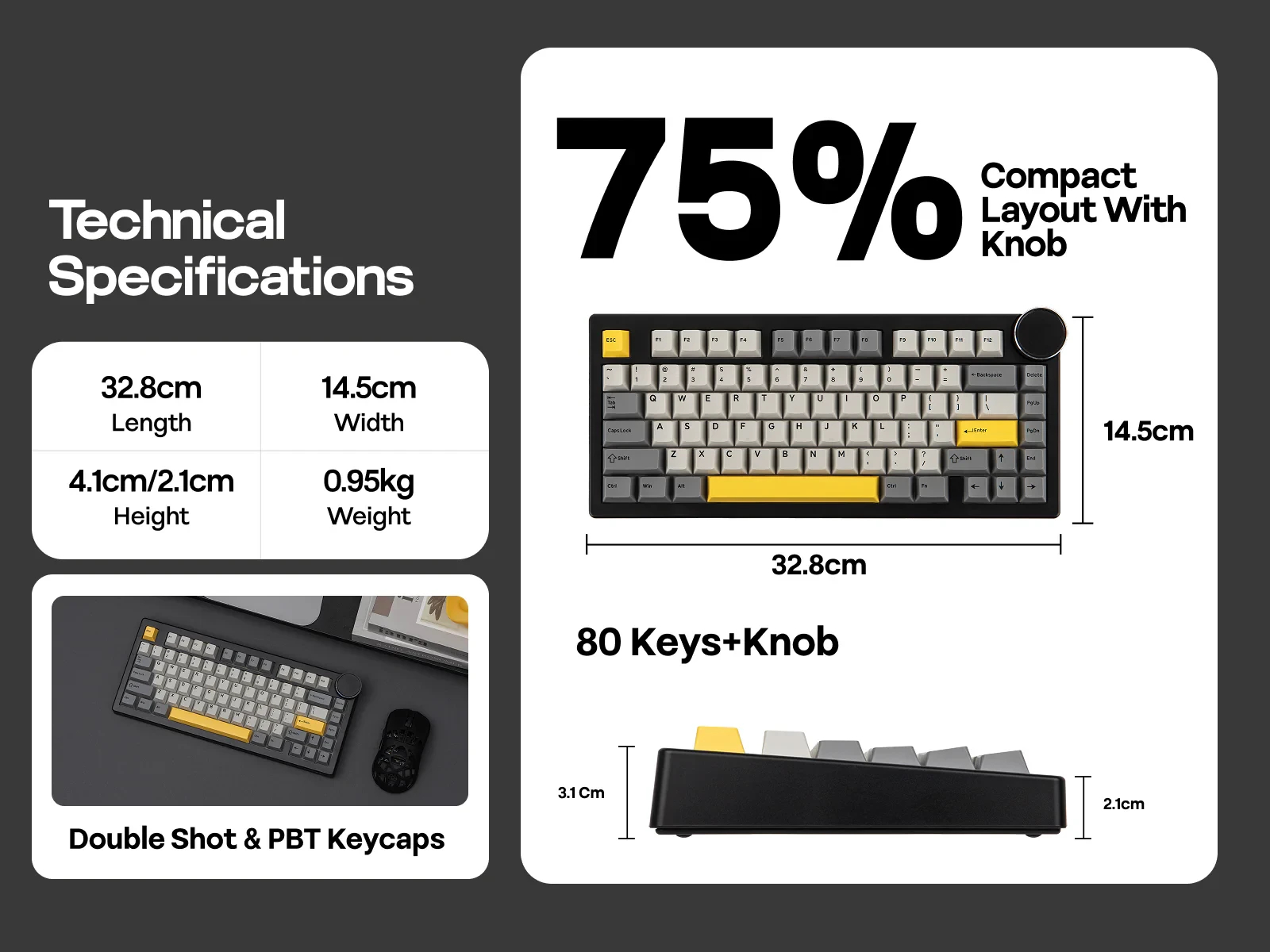 | ДОПЪЛНИТЕЛНИ | Innovative Smart Display & Knob 16M RGB Backlight Available Wireless/Wired Keyboard With 10000mAh Battery Gasket Structure with Five-Layer Sound Dampening Materials |