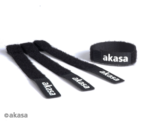 Akasa cable ties hook-and-loop self-fastening. It is easily adjusted to suit cable sizes. It is an essential product to protect cables, improve airflow and show off your system with style.