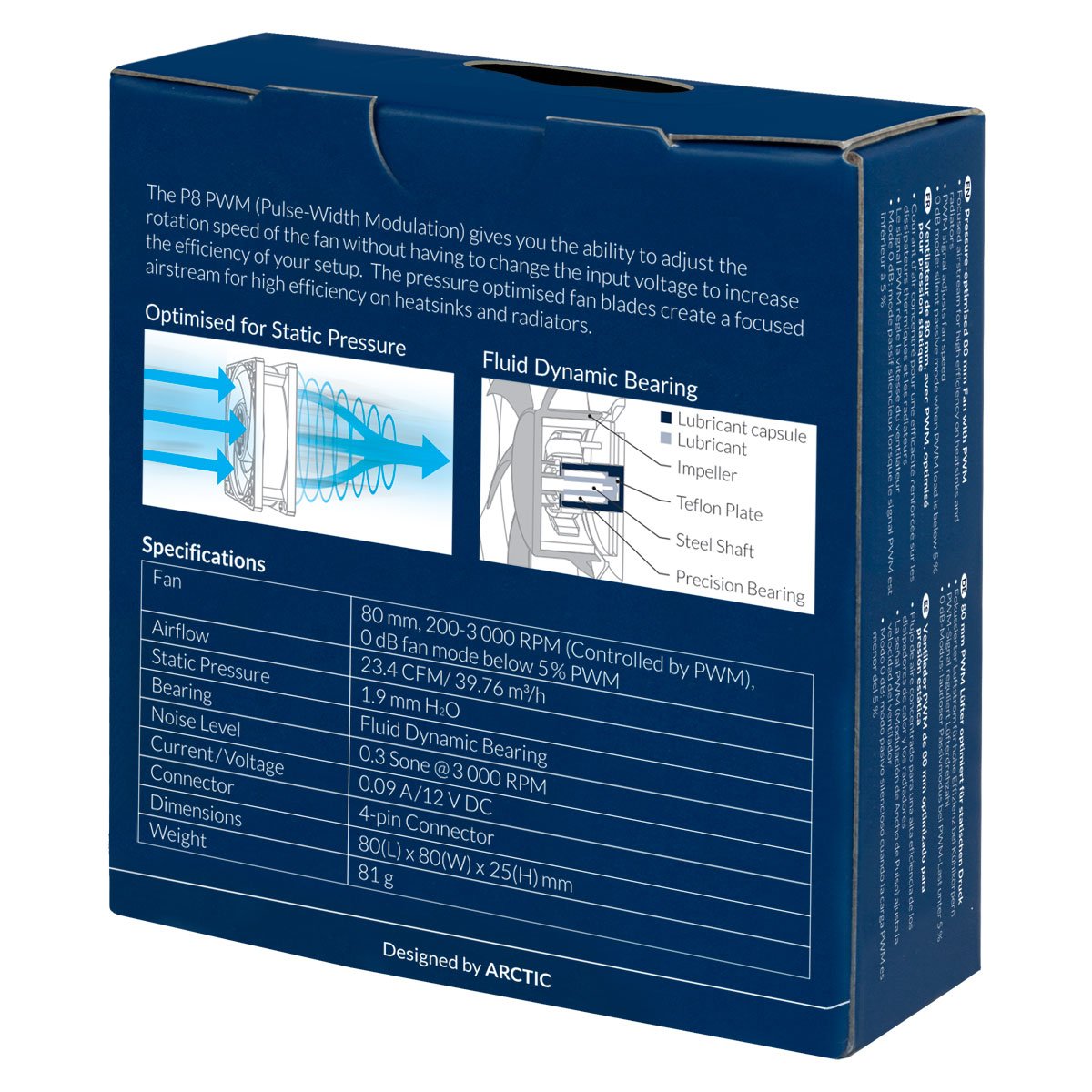 Arctic вентилатор Fan 80mm P8 PWM - black/black - 200-3000rpm