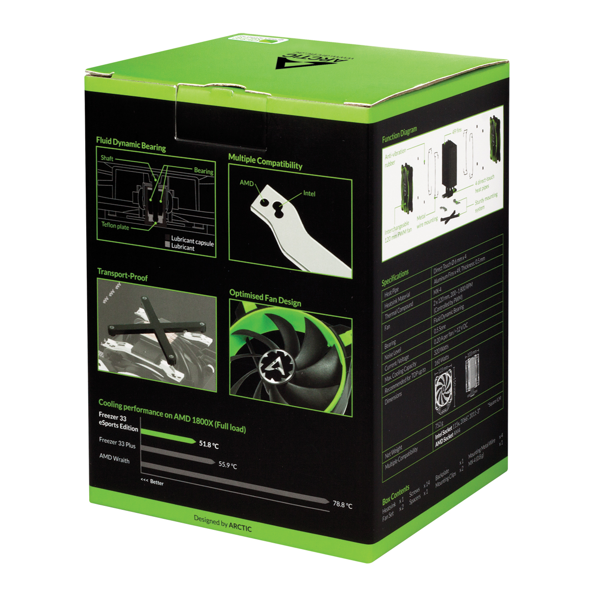 Arctic охладител за процесор Freezer 33 eSports Edition Green - AM4/2066/2011/1151/1150/1155/1156