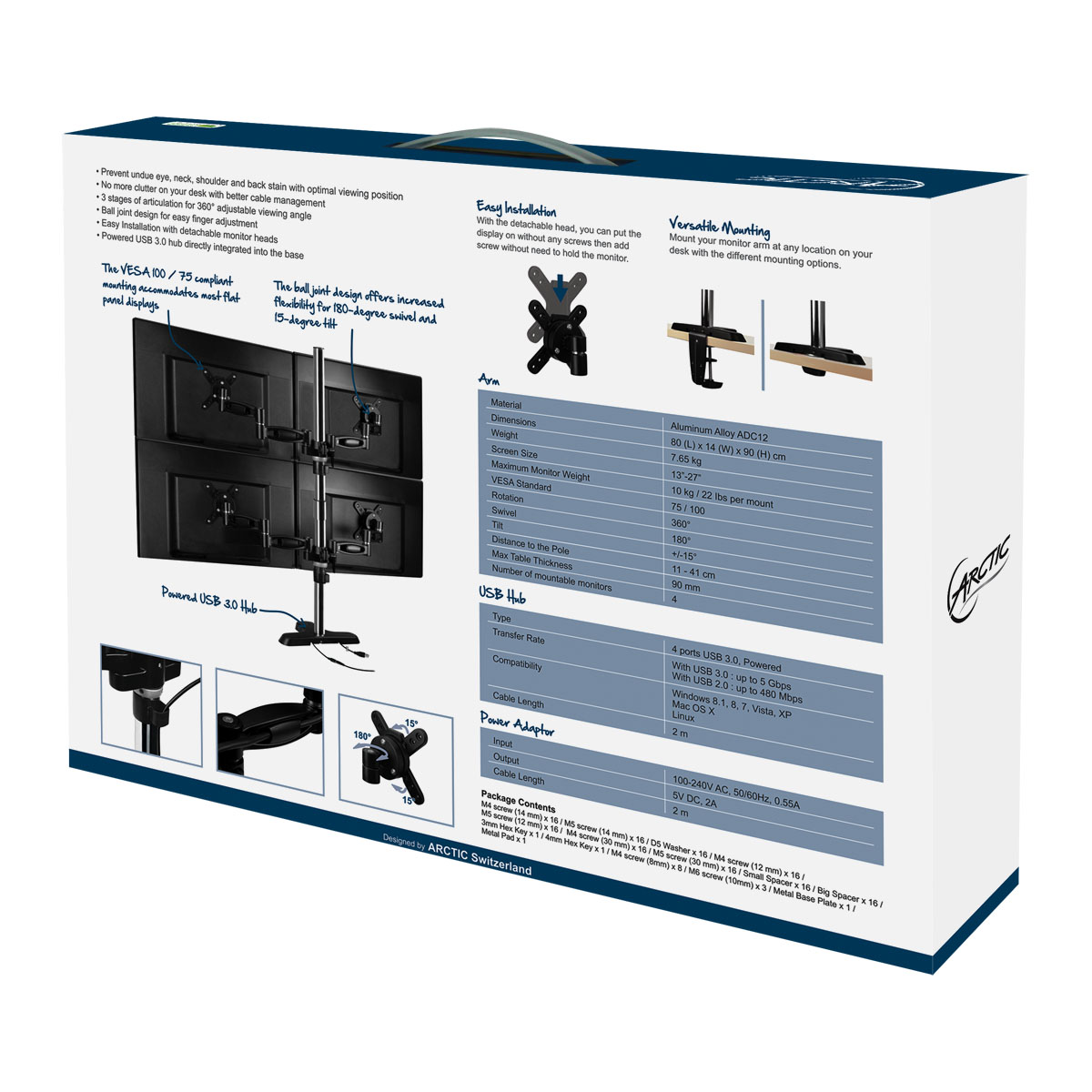 ARCTIC - Z4 Pro - Quad Desk Mount Monitor Arm - VESA 75 x 75 /