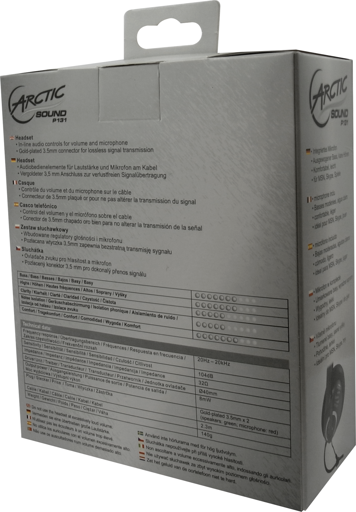 ARCTIC SOUND P131 contains all the necessary features that any users may look for in a basic headset. Since microphone is included, this headset is ideal for MSN, Skype and gaming.