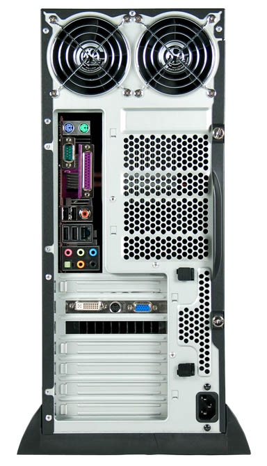 Noise Reduction The case has been designed from scratch with the goal to reduce the noise to an absolute minimum. Openings to the front of the case were intentionally left out. Air exhaustion and power supply cooling have been configured for a high end PC, despite this high end configuration the system operates virtually silent. The fans contain a patented vibration absoption in order to lower the noise level further. | ||