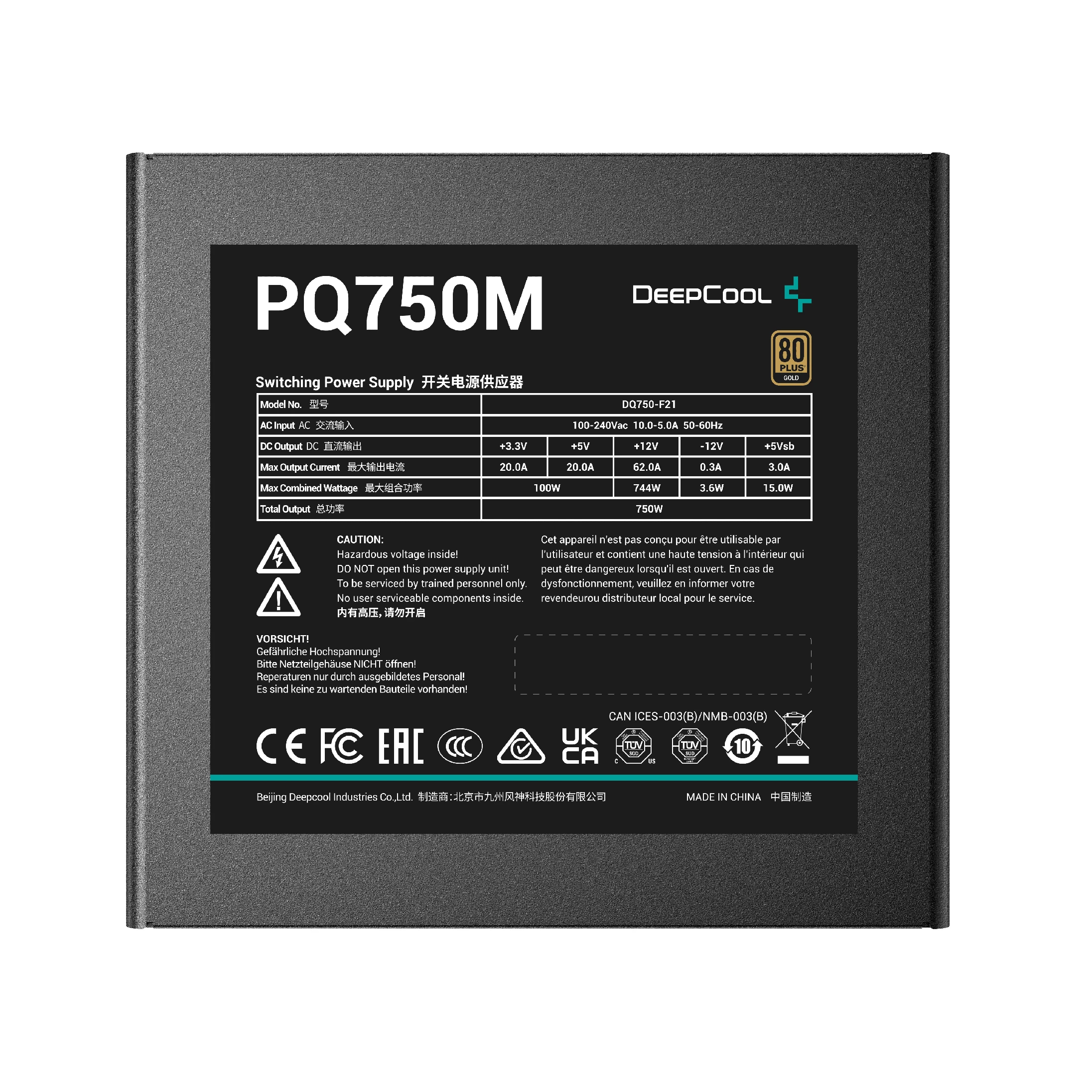 DeepCool захранване PSU 750W - 80+ Gold, Full Modular - PQ750M