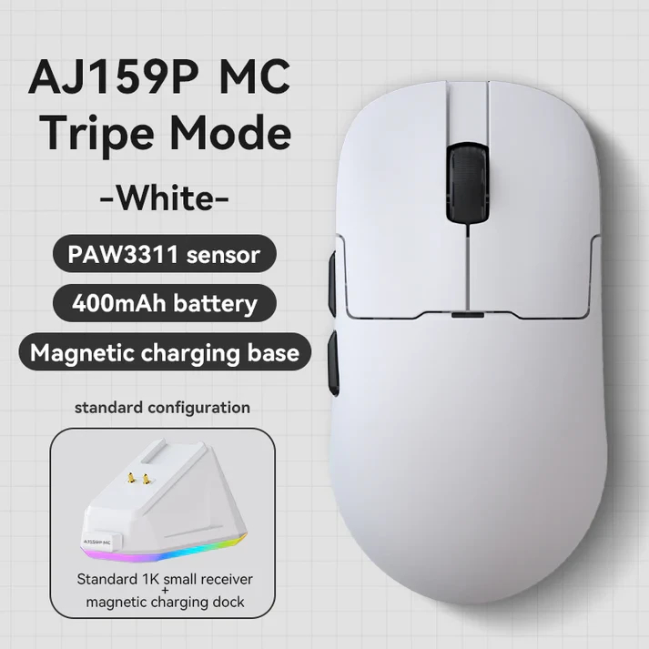 Ajazz AJ159P MC - Wireless Gaming Mouse - 1K, Magnetic Charging Dock, White