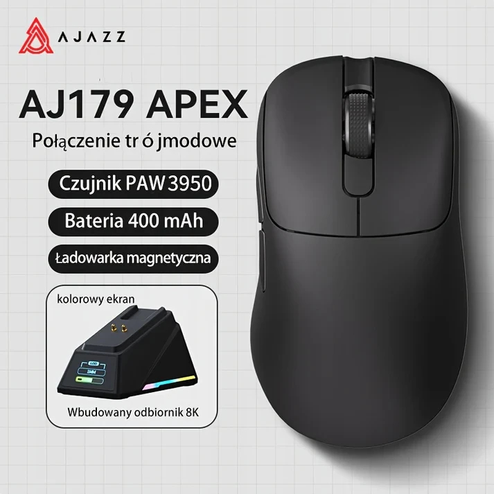 Ajazz AJ179 APEX - Wireless Gaming Mouse - 8K, Magnetic Charging Dock, Black