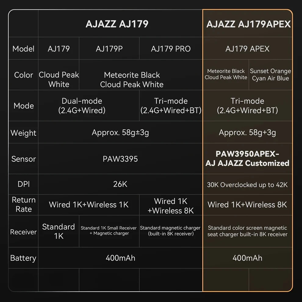 | SENSOR | PAW3950 APEX-AJ (Ajazz Customized Sensor) |