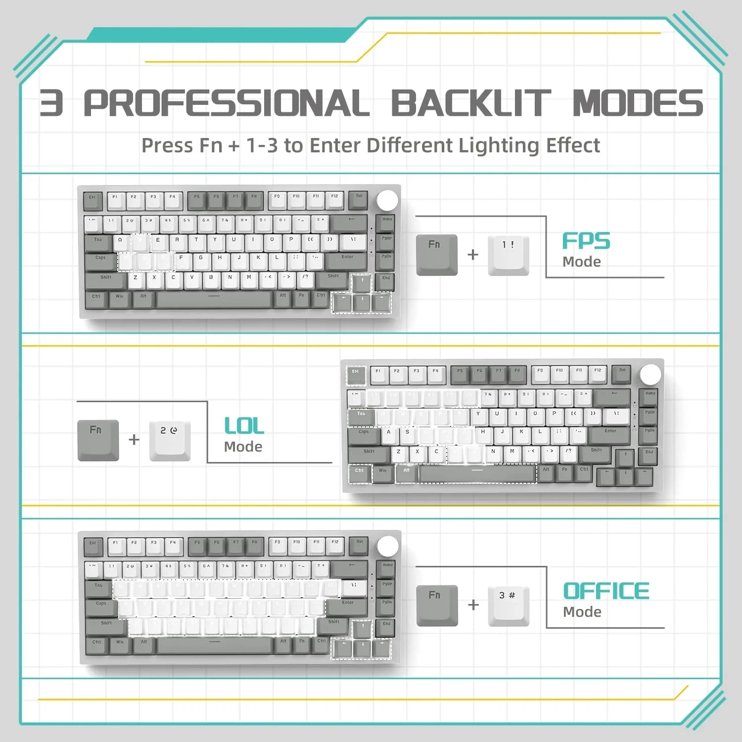 Ajazz Gaming Mechanical Keyboard AK820 - AS Red Switch [Linear] (English US), Gray White, White Light