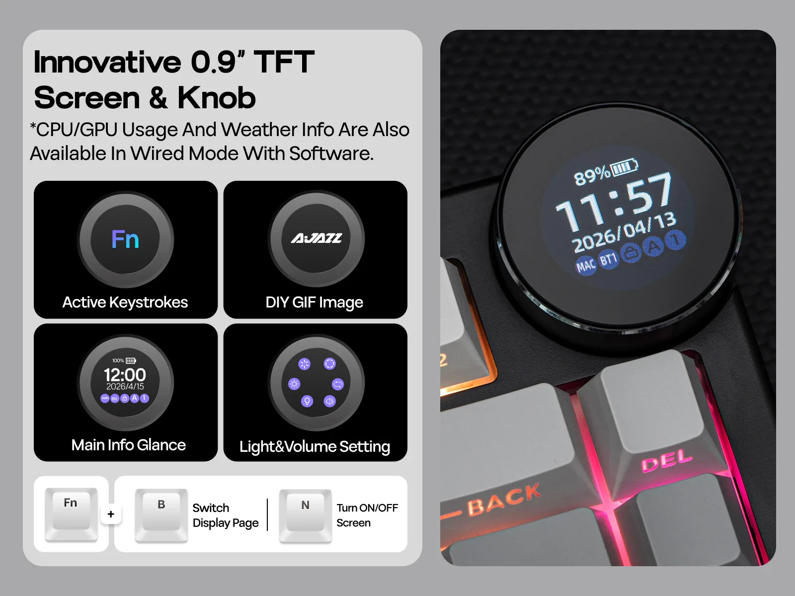 | OTHERS | Innovative Smart Display & Knob 16M RGB Backlight Available Wireless/Wired Keyboard With 10000mAh Battery Gasket Structure with Five-Layer Sound Dampening Materials |