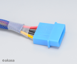 Akasa premium quality SATA cable converts 4pin PSU power connector to 15pin SATA power connector. Blue UV reactive cable sleeve and connectors. Latch is used for easy and secure connection.