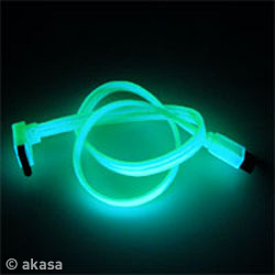 Akasa premium quality twisted pair green UV reactive SATA cable provides efficient data flow with high impedance insulation.