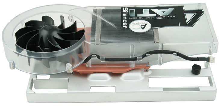 04/2005 techniz: ATI Silencer 1 Overall, I am very impressed with the cooling power of the VGA Silencer from Arctic-Cooling. The Arctic-Cooling VGA Silencer is performing very well during the testing. The design of this VGA Cooler is very stylish and nice. In a well ventilated case, it does a much better job of cooling than the stock heat sink. I have to say that this may be the air cooled solution for everyone. You can run the VGA Silencer silent, and it does a very good job. Furthermore, by using it will add more overclockability to the VGA Card. Highly Recommended for this VGA Silencer from Arctic-Cooling. | |