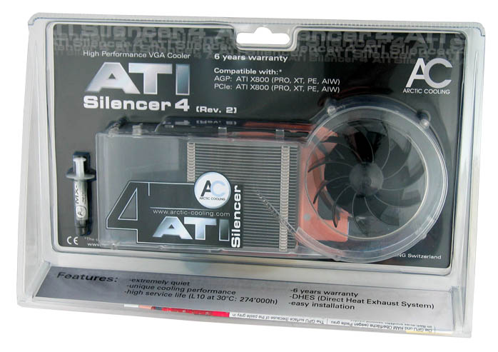05/2005 PC Labs: ATI / NV Silencer 1 Overall ATI Silencer 1 and NV Silencer 6 are both good products. They successfully silence the cards and let us get more speed out of our cards. They have six years warranty, a clear sign of Arctic Coolings confidence in the products. They can be found between 35-39$. We definitely recommend them for a cool and quiet gaming experience. | |