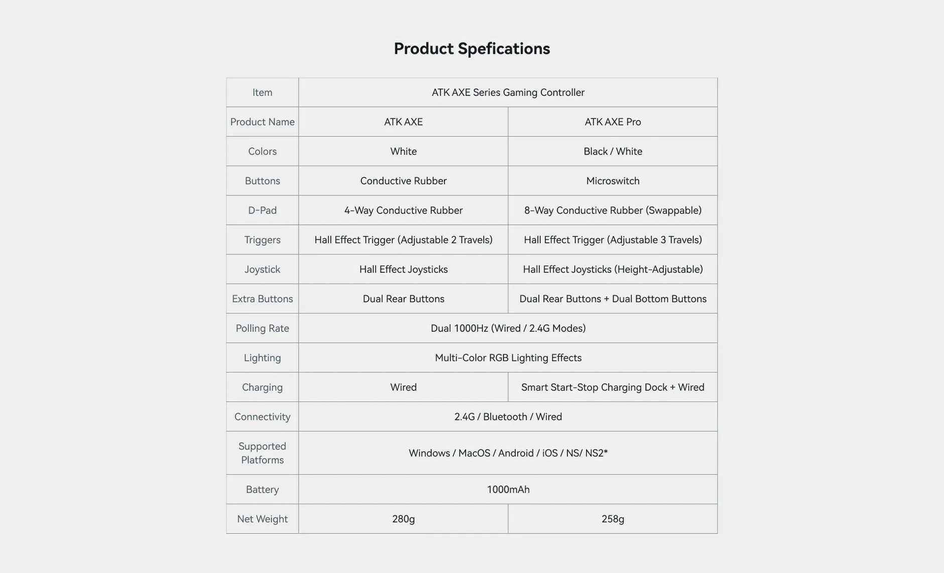 | EXTRAS | Hall Effect Joysticks & Adjustable Triggers Micro Switch ABXY Buttons Immersive Haptic Feedback Tri-Mode Connectivity Cross-Platform Compatibility |
