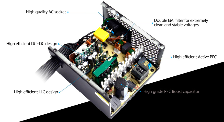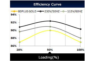 80 PLUS® GOLD certified - Up to 87~90% efficiency (20~100% loading)