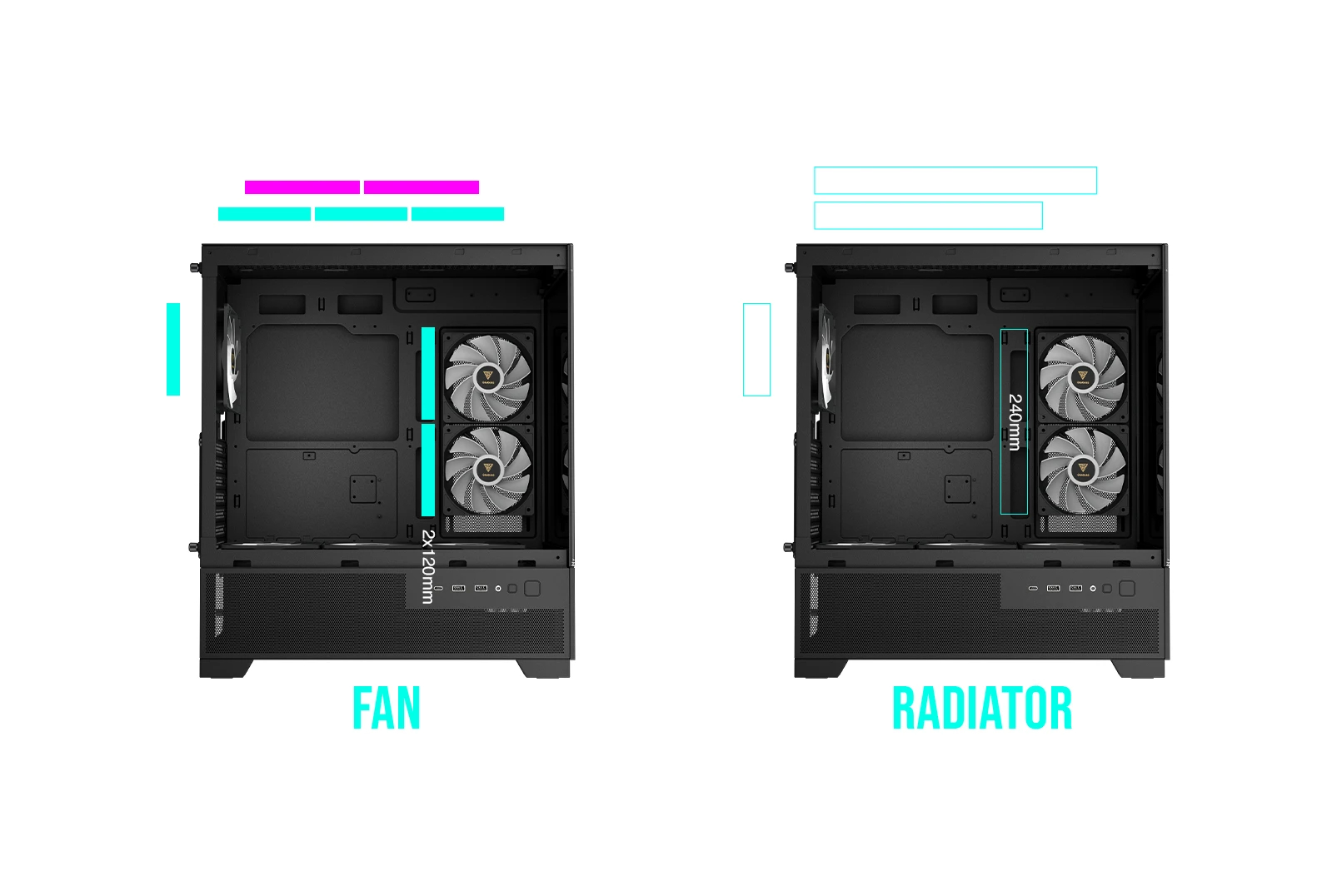 | INCLUDED FANS | Side: 2 x 120 mm ARGB Rear: 1 x 120 mm ARGB Bottom: 3 x 120 mm ARGB |