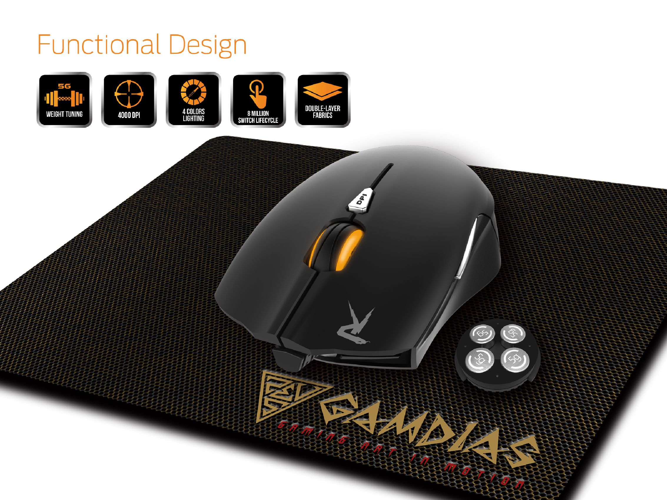 Gamdias Gaming Mouse - OUREA E1 + PAD NYX E1 - 4000dpi, backlight, weight tunning