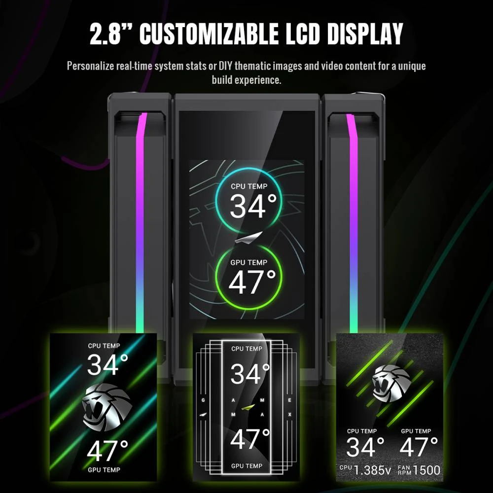 | OTHERS | 2.8 inch Customizable LCD Display Equipped with 6 x 6 mm heatpipes and dual 120mm fans for powerful, efficient heat dissipation Precision Soldered Copper Base |