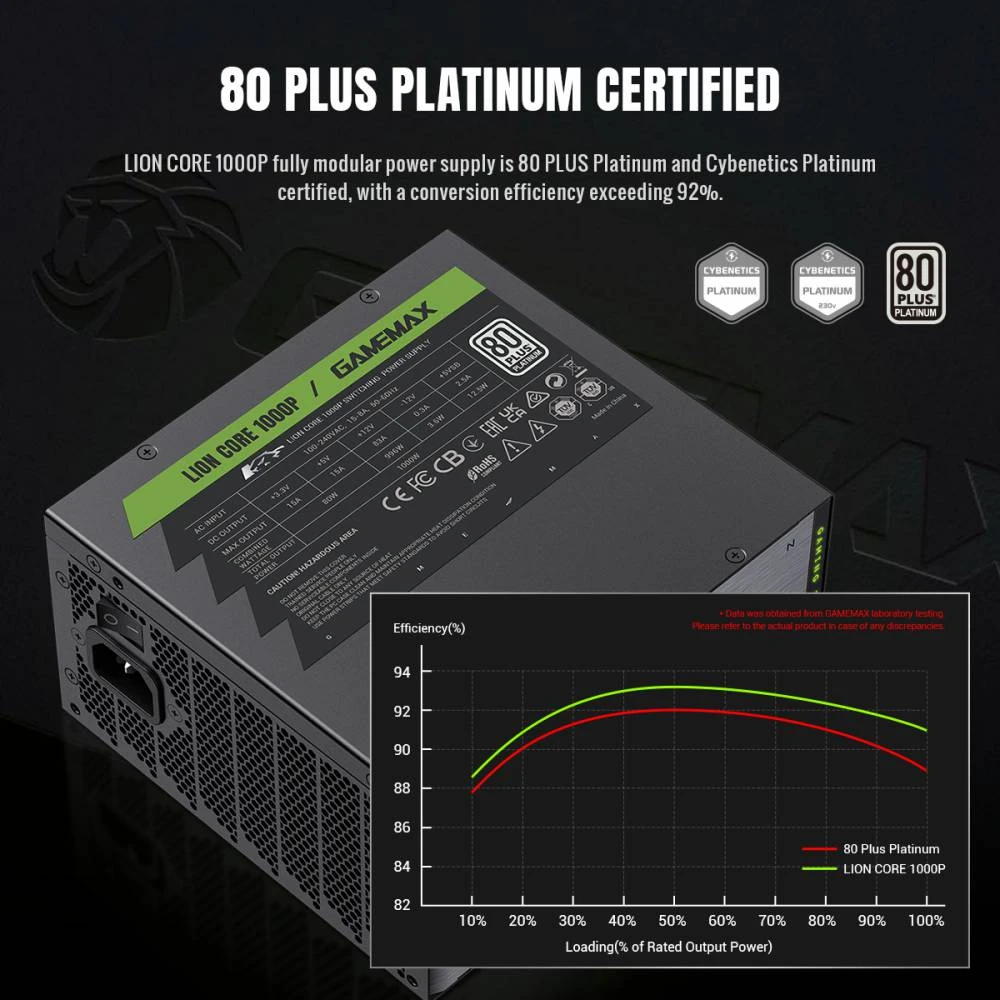 Gamemax PSU ATX 3.1 1000W Platinum, Full Modular - LION CORE 1000P