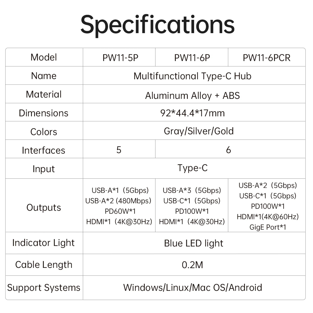 Orico Docking Station Type-C - PW11-6PCR-GY-EP - HDMI x 1, USB-C x 1, USB3.0 x 2, USB-C PD100W x 1, LAN x 1 (1Gbps)