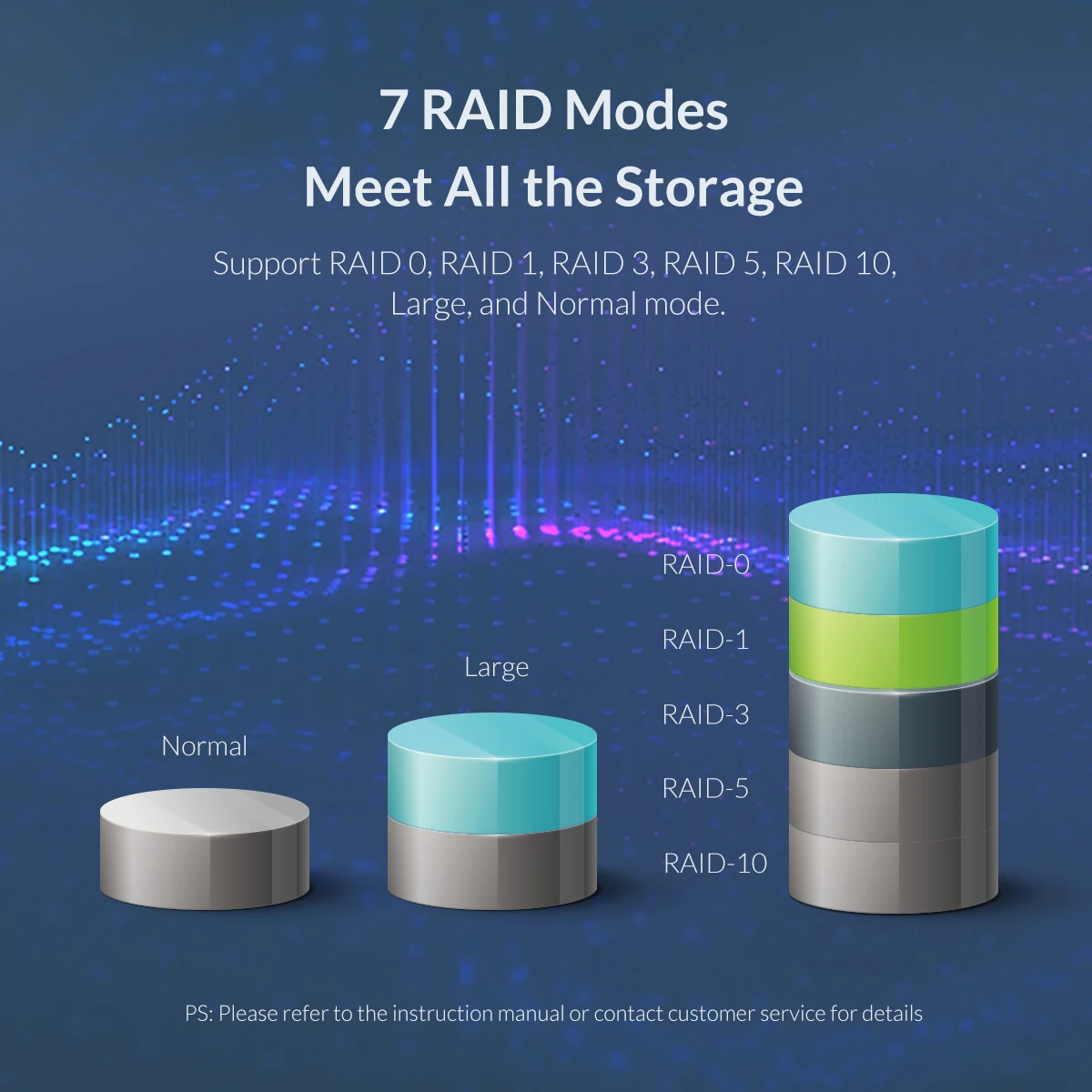| DETAIL 5 | RAID modes suported : Raid 0, Raid 1, Raid 3, Raid 5, Raid 10, clone, large, normal |