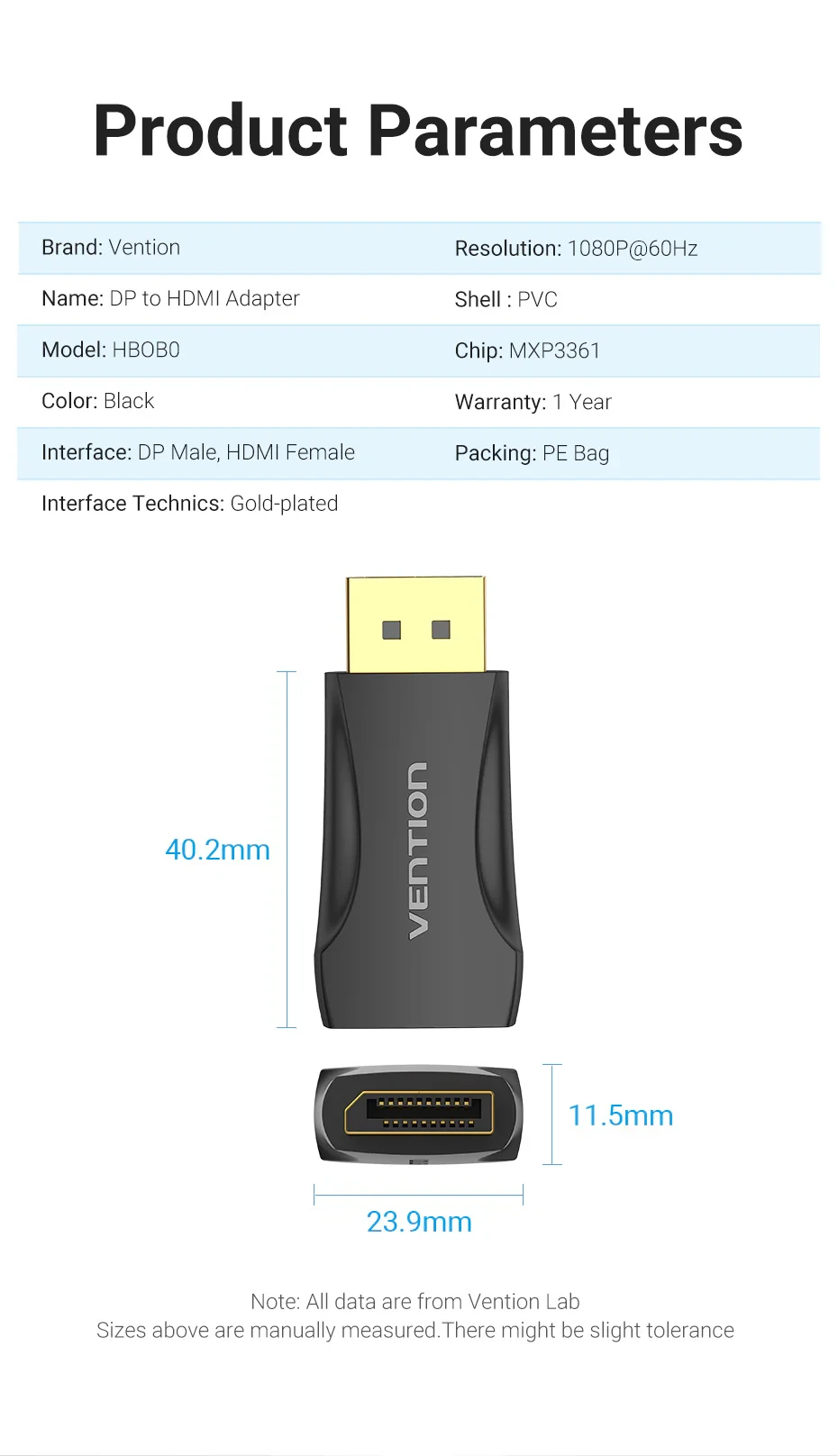 Vention Adapter DisplayPort DP M / HDMI F Gold plated - HBOB0