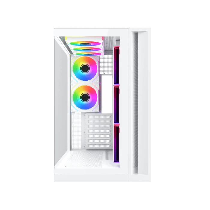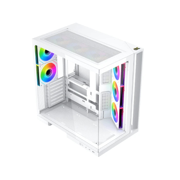 | OTHERS | 2 Tempered Glass Panel Design Angled Front-Right Fans and an Airflow-Optimized Layout Keep Temps Low and Performance Steady Top Dust Filter E-ATX (= 285mm) ATX (Support Back Plug) M-ATX (Support Back Plug) Mini-ITX(BTF) Support GPU Vertical Installation PSU Limitation up to 180mm SSD/HDD Mounting Flip Cover |