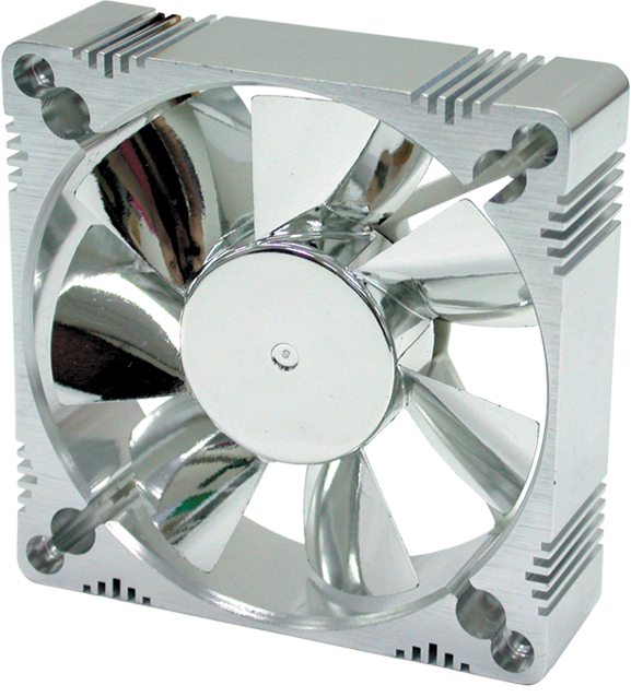 Manufactured by Evercool Thermal, this fan is forged from a block of polished, extruded aluminum.