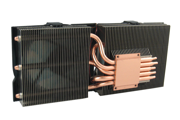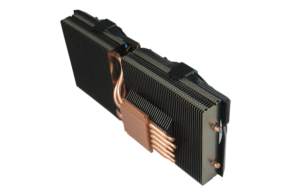 heatpipes are interlaced into 85 optimized high-quality Aluminium fins. Together with a flat stack fin
