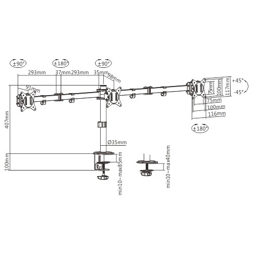 ДОПЪЛНИТЕЛНИ | Monitor desk mount with triple monitor arm Arms allow to swivel, extend, retract or tilt your display and enables rotating the displays from landscape-to-portrait mode, etc Durable strong desk clamp for easy and secure fixation on your desk Practical cable clips in the arms Works with almost any LCD monitor (max. 27") |