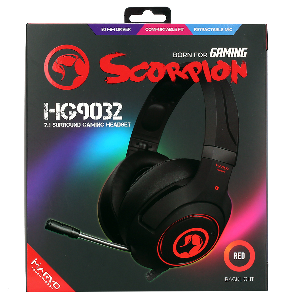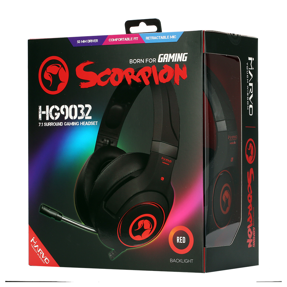 Marvo геймърски слушалки Gaming Headphones HG9032 - 7.1 Surround, RED backlight - MARVO-HG9032