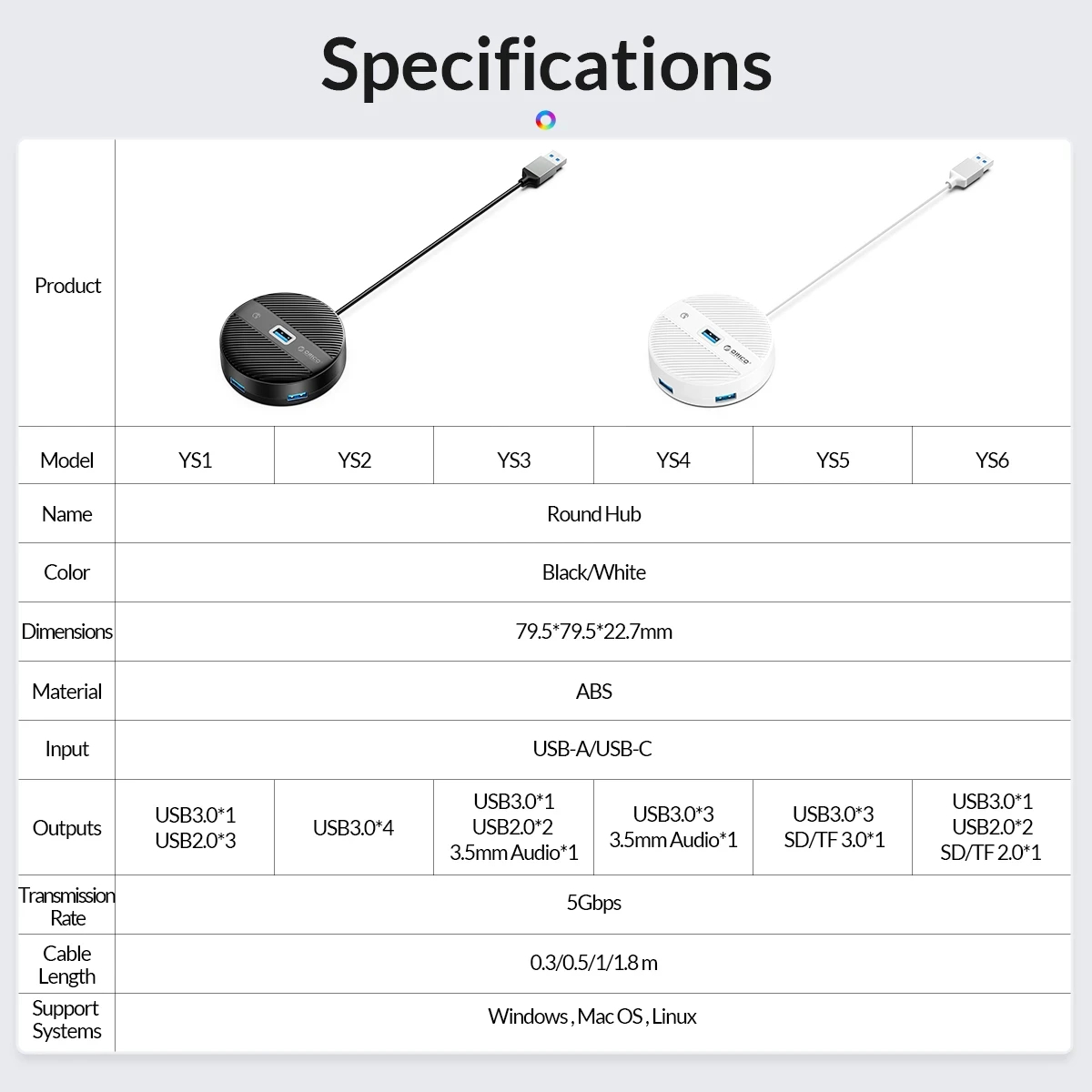 Orico хъб HUB USB3.1 Type-C 4 port - 4 x USB3.0 White, Audio/Mic x 1 - YS4-C3-03-WH-BP