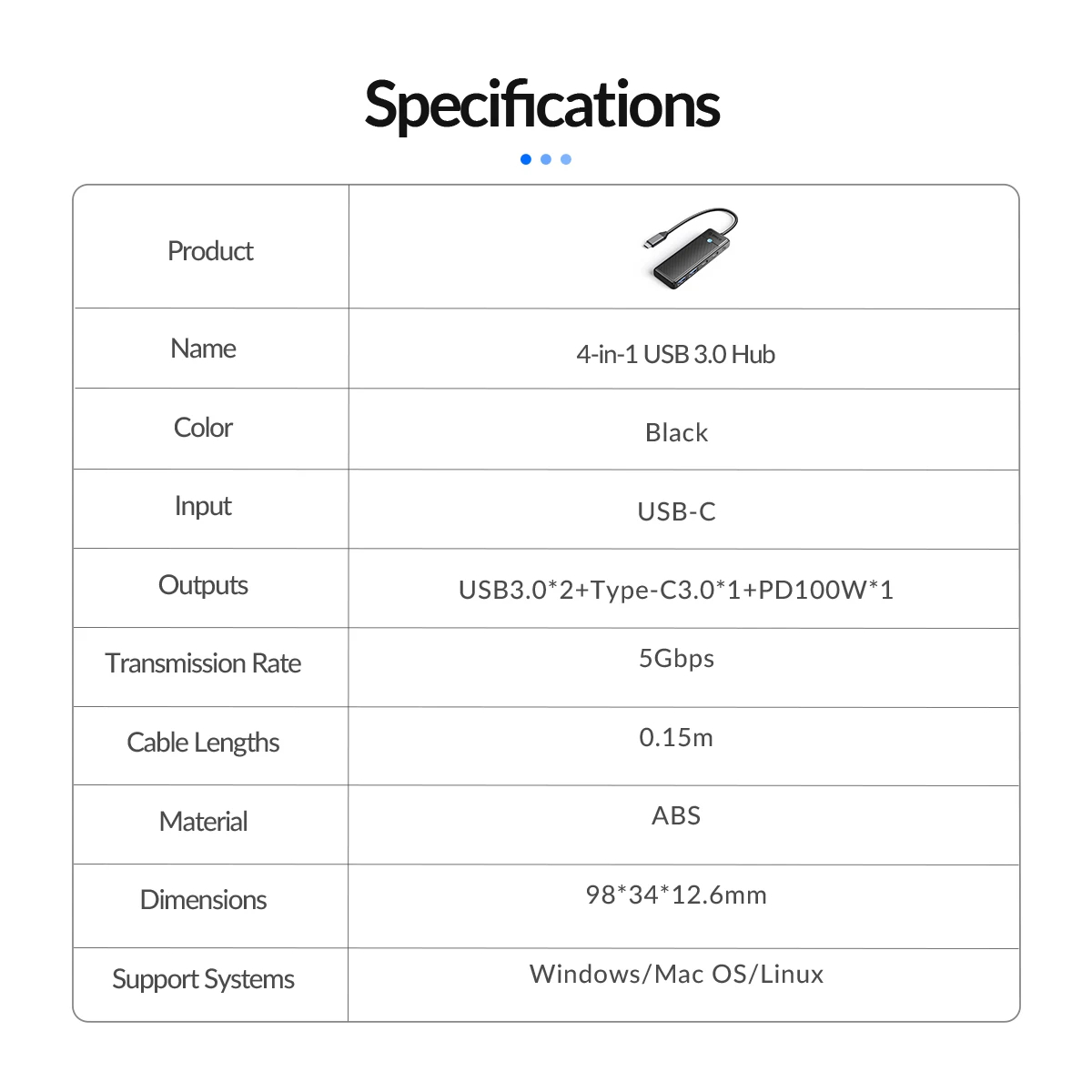 Orico хъб USB3.1 HUB Type-C - 2 x USB3.0, 2 x USB-C - PAPW2AC-C3-05-BK-EP