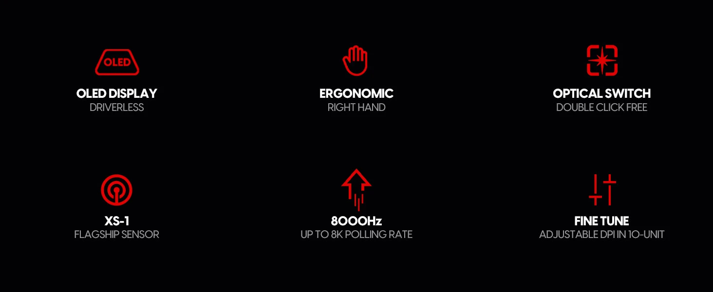 ДОПЪЛНИТЕЛНИ | OLED Display on the bottom of the mouse Driverless - Change the settings without the software Super high 8K polling rate Pulsar Blue Encoder Aerospace-grade aluminum alloy wheel Superflex Paracord Cable 500mA battery for 70-100 hours of usage |