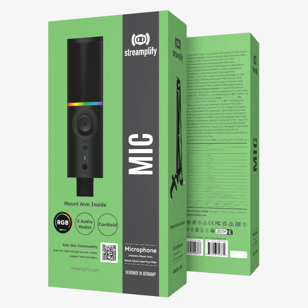 Streamplify професионален стрийминг микрофон със стойка Streaming Microphone With Mounting Arm RGB - MIC ARM - SPMC-MZ1C227.11