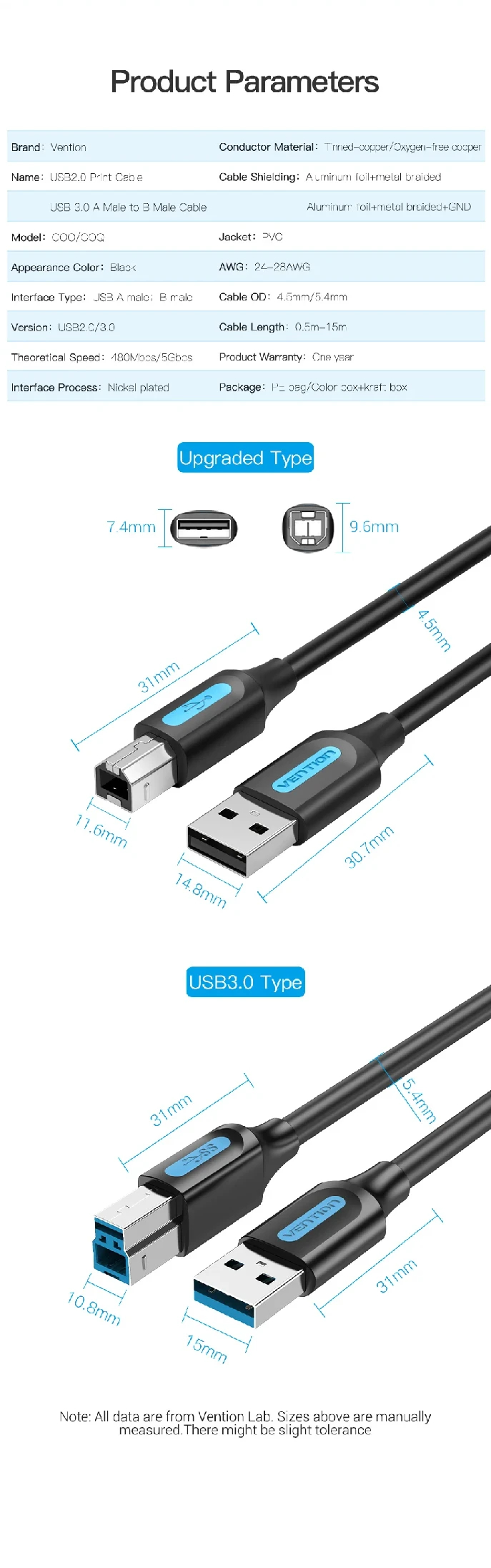 Vention Кабел USB 3.0 AM / BM - 0.5M Black - COOBD