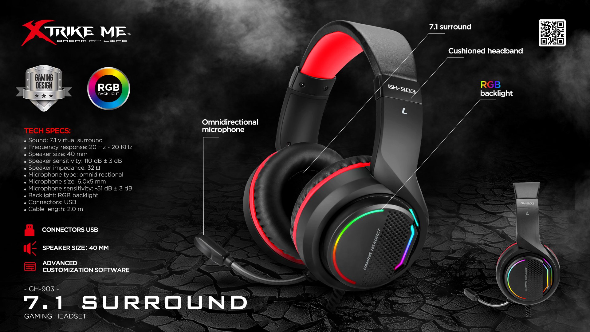 Xtrike ME геймърски слушалки Gaming Headphones GH-903 - 7.1 USB, RGB